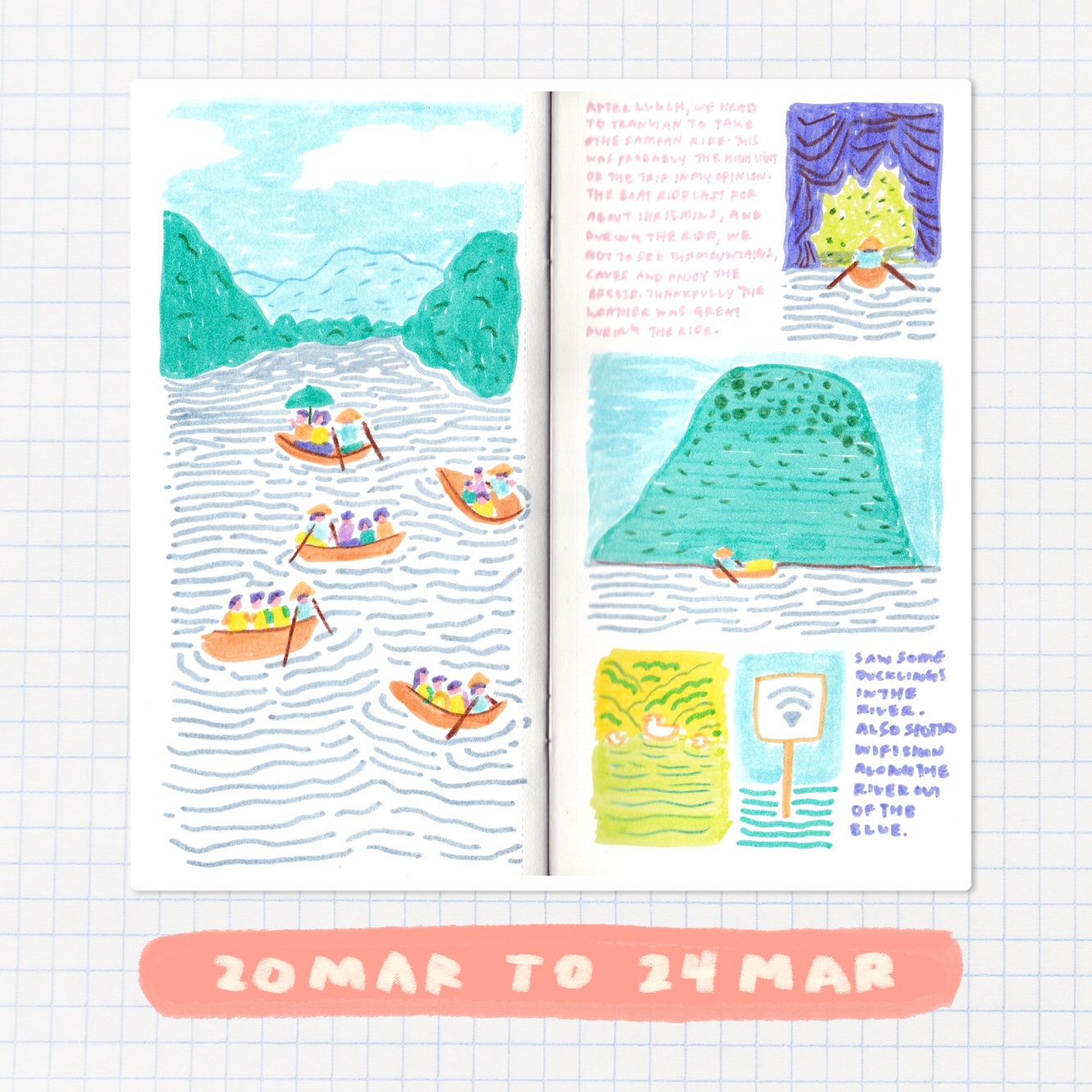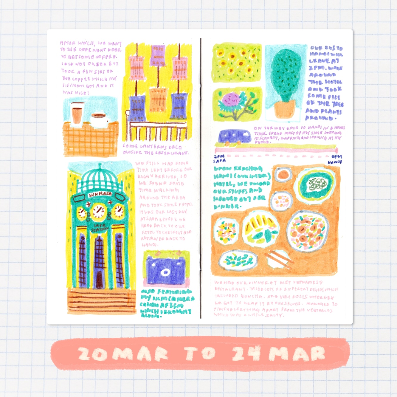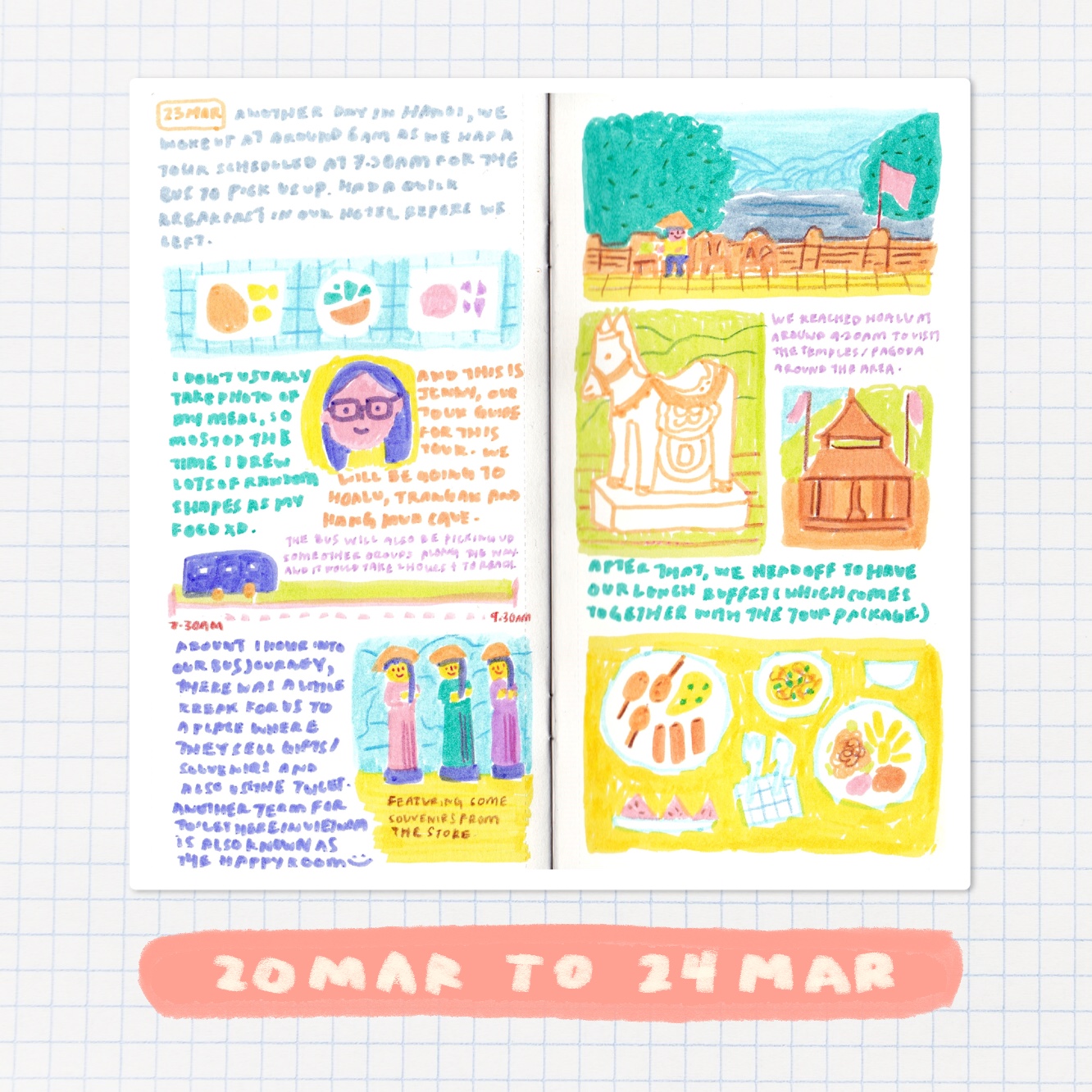 Overall this was a lovely trip and I would definitely be back Vietnam again to explore more of their landscapes and nature! It was also nice to finish drawing on my very first travel sketchbook which serves as a great memento for me. :)